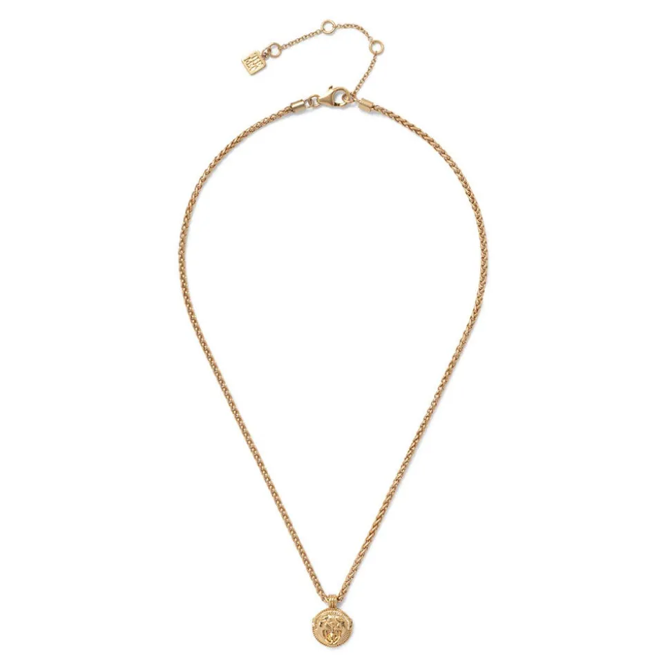 Our modern necklace in 14k vermeil evokes an ancient gold lion-head pendant in The Met, which was made on the island of Cyprus during the second half of the 5th century B.C. On the original pendant, the lion-head is finely modeled in two halves, left and right, with a flat gold sheet closing off the neck aperture.
