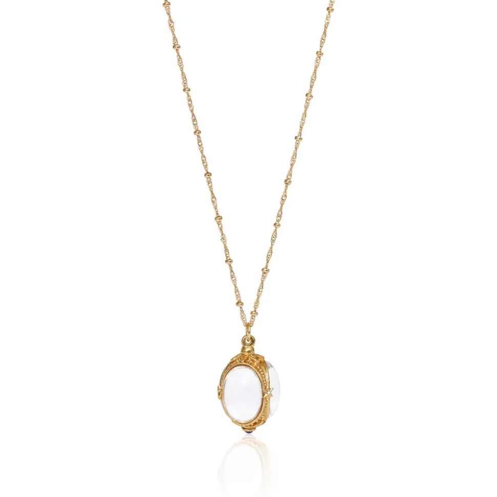 Our starry glowing orb is crafted of 24K gold plate with sodalite, Czech glass, and Swarovski® crystals. It pays homage to an ancient amulet pendant in The Met collection. Wear this chic adaptation for a touch of timeless verve.