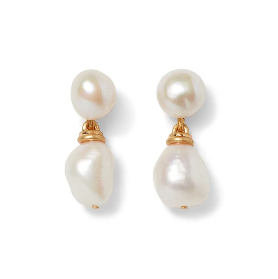 These stylish cultured freshwater pearl earrings reinterpret an elegant gold bracelet from Cyprus and now in The Met collection. So-called “baroque” pearls are named after the word barroco, a Portuguese term for a pearl with an irregular shape. The Museum’s bracelet belongs to the esteemed Cesnola Collection, which comprises Cypriot art and artifacts made between ca. 2500 B.C. and ca. A.D. 300, and serves as the most important and comprehensive assemblage of its kind in the West.