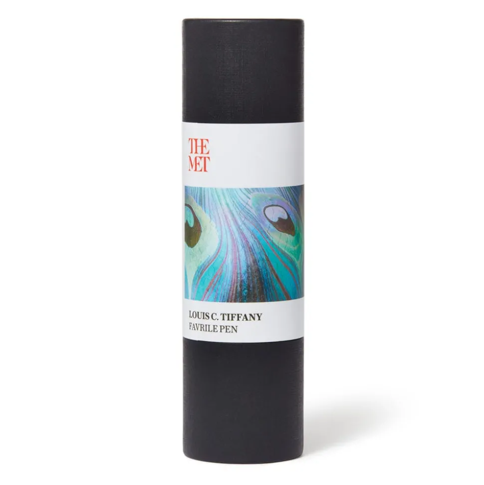 Louis Comfort Tiffany (American, 1848–1933) embodied the artistic spirit of America’s Gilded Age. In the early 1890s, he developed a method of blending different colors together in glass while it was in a molten state to achieve subtle effects of shading and texture. He called this type of glass “Favrile” (from “fabrile,” an Old English word meaning “handwrought”). This pen recalls an iridescent Favrile glass vase (ca. 1900) with a peacock feather motif, produced by the Tiffany Glass and Decorating Company (American, 1892–1902).