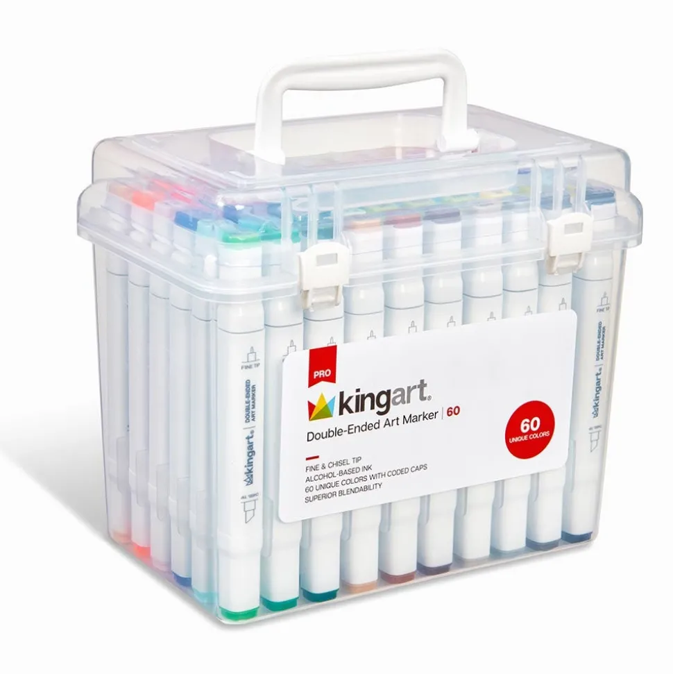 The sky’s the limit with this 60-piece set of richly pigmented double-ended markers. Fit with a broad chisel tip and fine tip, these versatile, professional-quality markers are perfect for hobbyists and experienced artists alike. The single reservoir ensures consistent color and an easy, effortless flow. The unique design lets you easily switch between precise linework and full coverage.