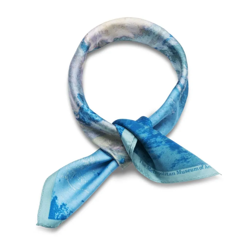 Claude Monet (French, 1840–1926) was a key figure in the Impressionist movement that transformed French painting in the second half of the nineteenth century. Dedicated to painting en plein air, Monet created an extensive garden on his property at Giverny, including a water lily pond, which inspired a series of paintings in 1899; thereafter the subject dominated his art. Our colorful neckerchief features a detail adapted from Monet’s enchanting Water Lilies, Night Effect.