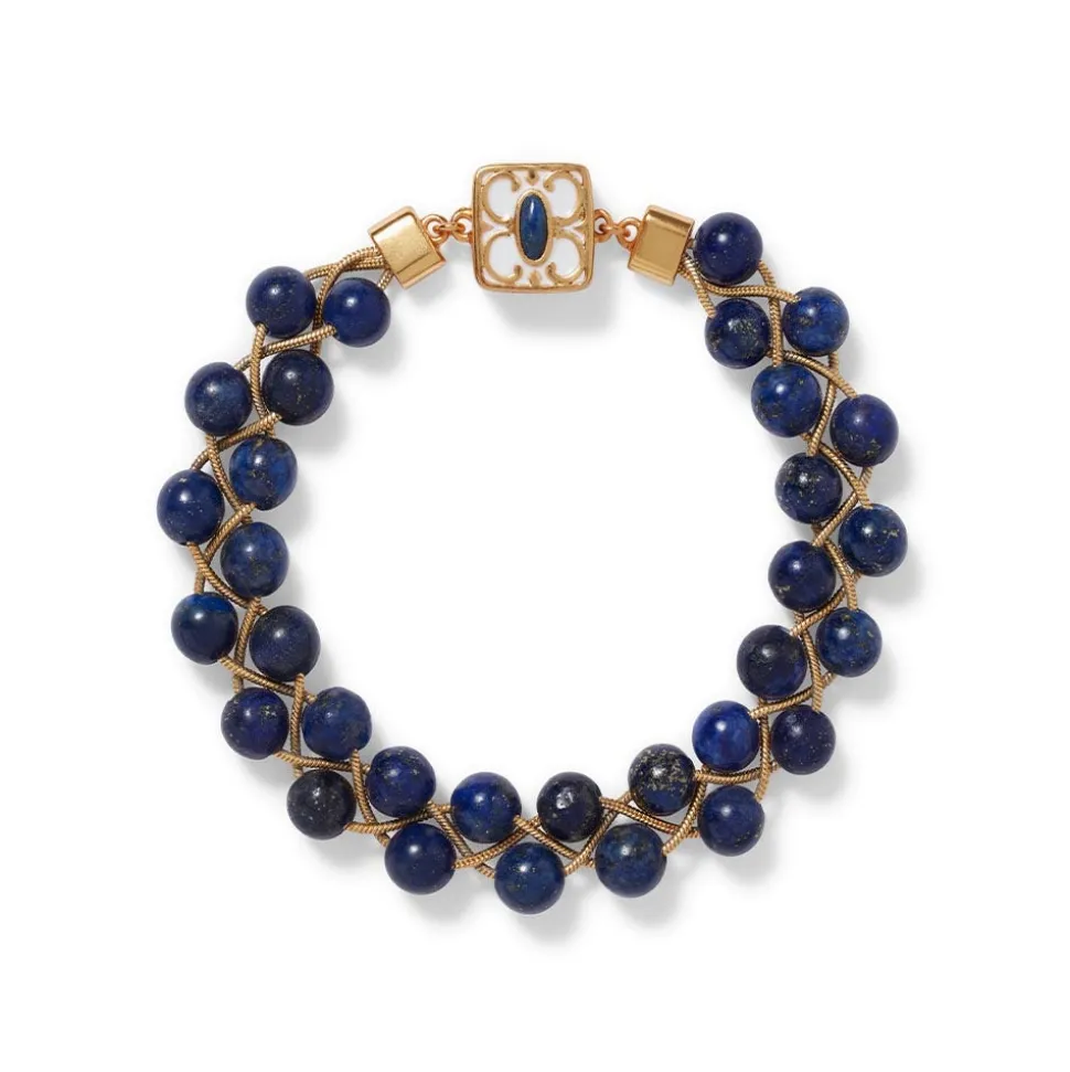 This rich blue lapis-and-enamel bracelet is inspired by a spectacular Spanish baldric (first half 17th century), a type of crossbody belt or chain often worn to support a sword. Much of the scholarship around jewelry fashions throughout history is informed by portraits in which the sitters wear a certain style of adornment. An enameled example very much like the one displayed in The Met’s Vélez Blanco Patio, dedicated to the decorative arts of Spain between 1450 and 1700, is worn diagonally across the chest in an early 17th-century portrait of a young man.
