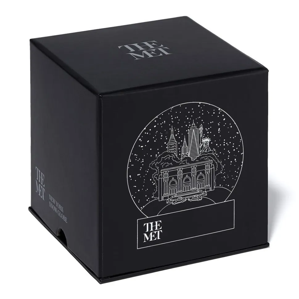 The imposing facade of The Met Fifth Avenue building takes center stage in this delightful glass snow globe. The distinctive design evokes the Manhattan skyline’s soaring towers and Central Park greenery, while the beloved Statue of Liberty stands guard over the scene. Two iconic yellow taxis add an urbane (and colorful) accent on Fifth Avenue.